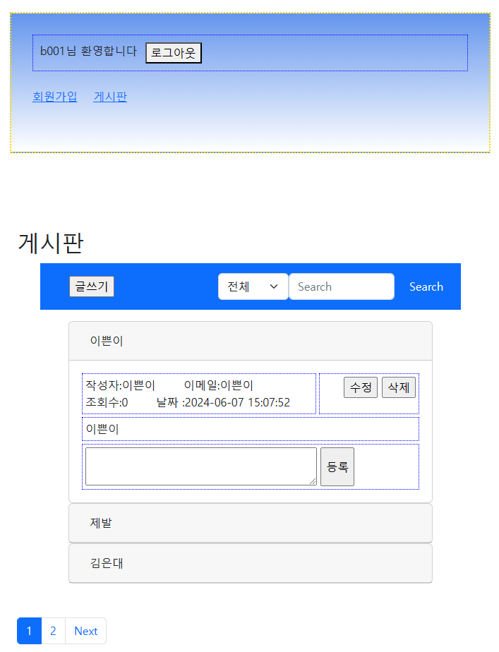 //글쓰기 성공 했으면 - 리스트 출력 하기 >> 첫번째 페이지
